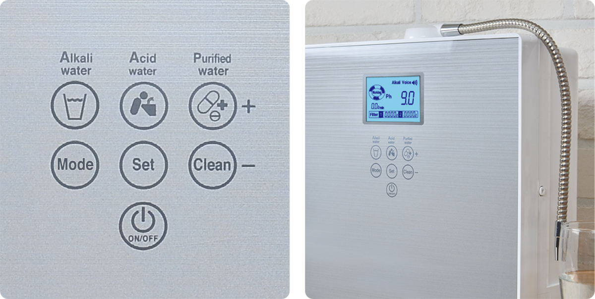 This product is connected directly to tap water and creates alkaline reduced water by first purifying the water with two special hybrid filters, then ionizing the water using 5 or 7 platinized titanium plates